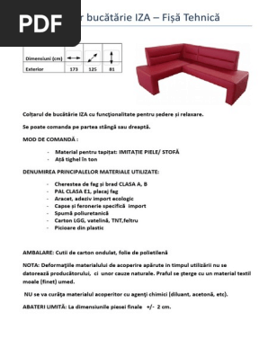 Coltar Bucatarie Iza Fisa Tehnica